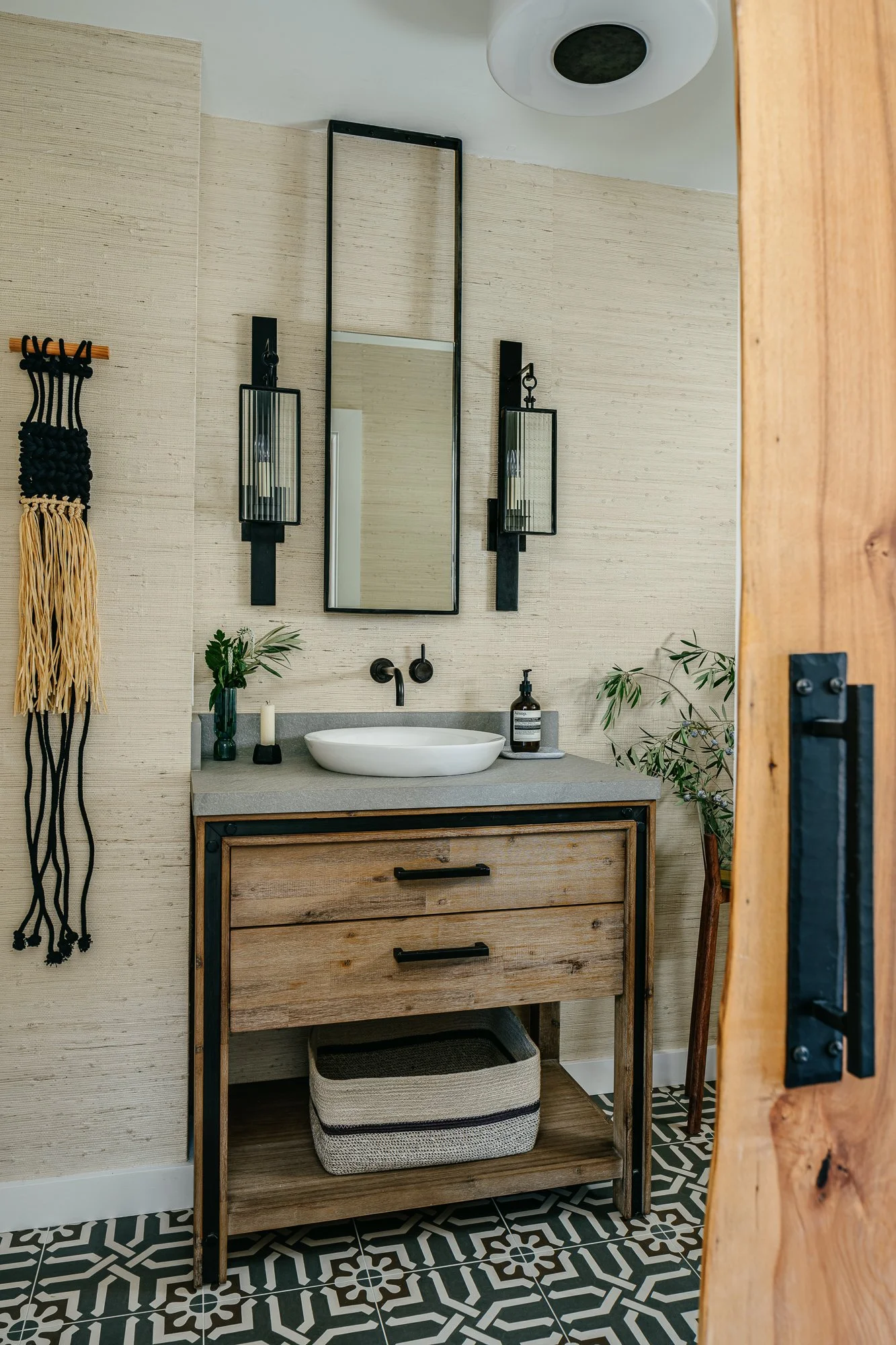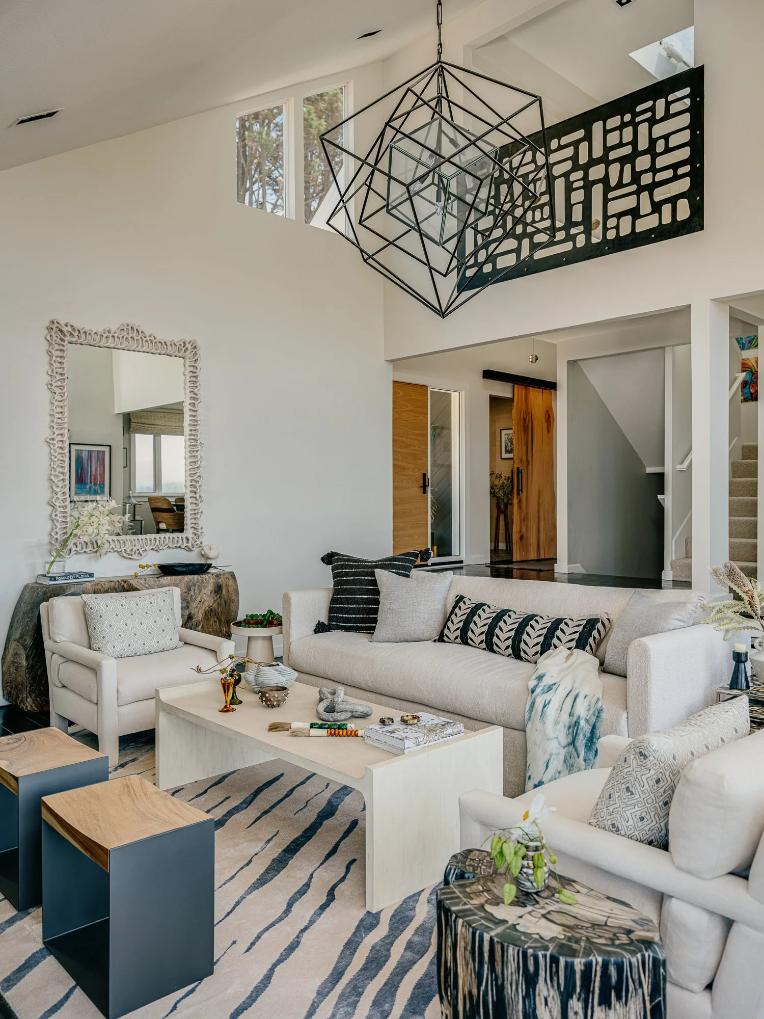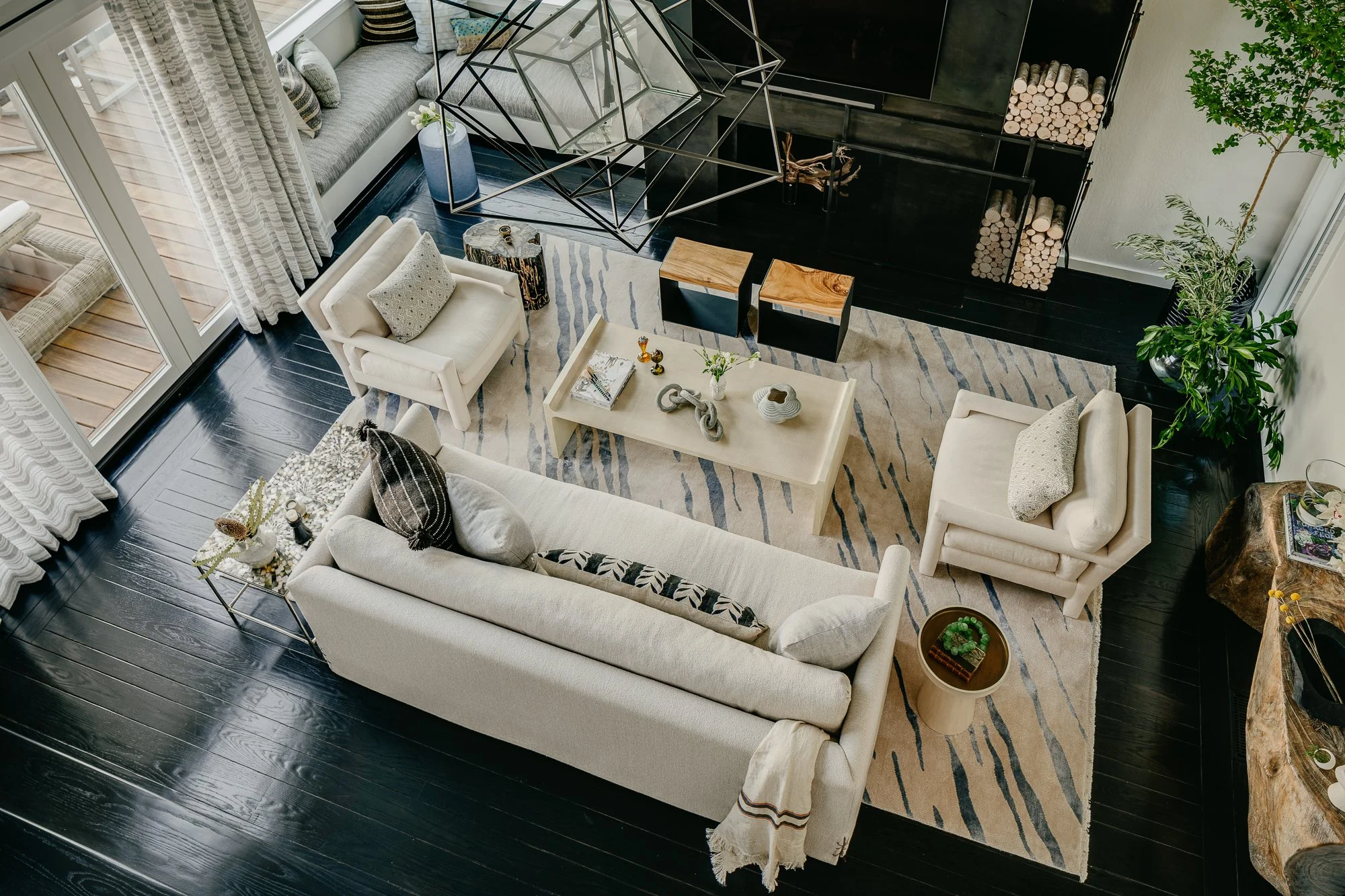 This rug provides movement similar to water, perfectly complimenting the different elements showcased in the living room.