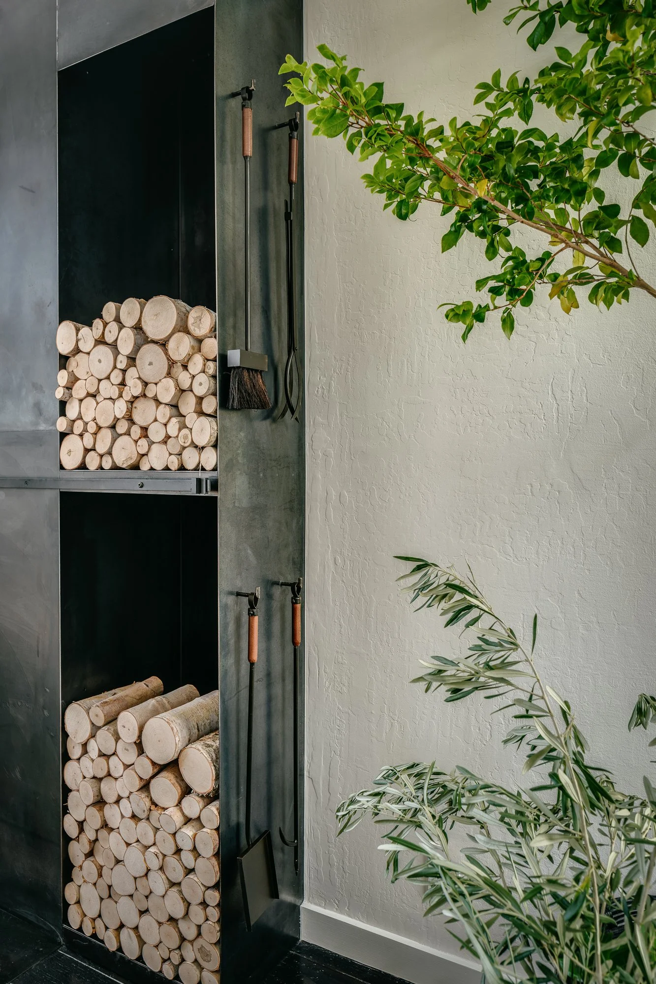 Sumptuous lines and mixed elements provide a dramatic entryway
